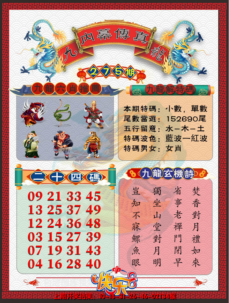 275期【半夜敲门心不惊,只见佳人盼缘份】開:?00 解:本期开?00 |